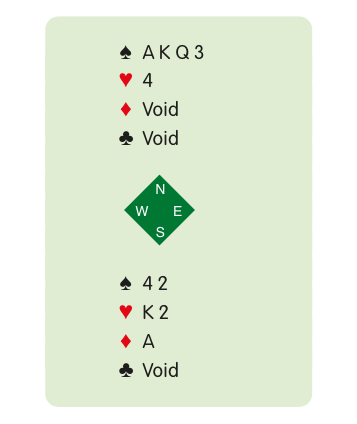 When South (in a no-trump contract) leads the A, discarding 4 from dummy, this will squeeze anyone (West or East) who holds four spades as well as the A. The presence in dummy of an idle card, the 4, is a key feature in making this an automatic squeeze.
