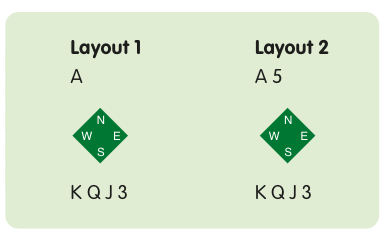 Layout 1 starts as blocked. To cash four tricks, South must possess an outside entry since the ace will win the first round in the North hand. On Layout 2, you can avoid a blockage by cashing the ace first; if, instead, you cashed one of the honours from the longer holding, then that would block the suit.
