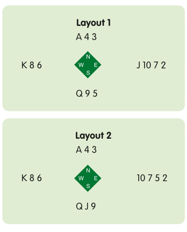 Suppose you are South on Layout 1. If you judge that West holds the king, you might lead the queen (as you would if you held the jack with it) hoping to escape a cover. If the position were actually as in Layout 2, West would be right not to cover since you could take the king with the ace and finesse the nine on the second round to score three tricks.