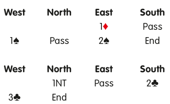 In the first auction, West, who bids spades before East, becomes declarer.