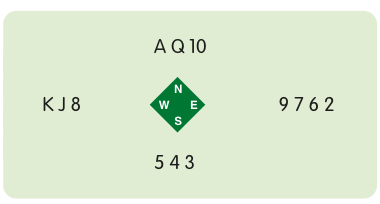 Declarer must first finesse dummy’s ten and later the queen to take all three tricks. If East held one honour, the double finesse would gain only one trick.