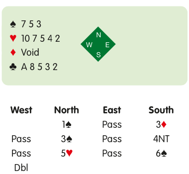 On a diamond lead, you expect to defeat the slam with a diamond ruff and the ♣A.