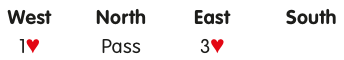 East’s 3♥ is a limit raise, indicating four hearts and about 11 points or 8 losers.