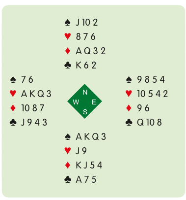 Therefore, after drawing trumps ending in dummy, you play dummy’s J (you can presume from the lead that West holds the Q) and discard a losing heart.