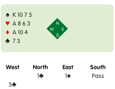 A jump cue bid of opener’s suit to show a hand with 4-card support for partner’s overcall and the strength for a value raise (unassuming cue bid).