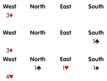 In each case, West’s bid is pre-emptive in nature. For the first and second auctions, West might hold: