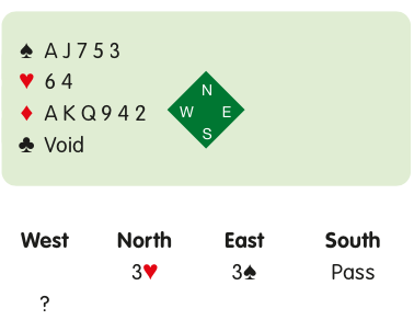West wants to play in a slam unless there are two fast heart losers and bids 5♠ to ask.