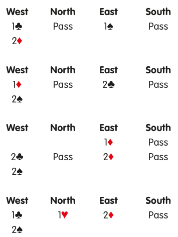 The 2♠ bid in the fourth sequence is not a reverse; this is because the 2♦ response had already taken the bidding above the level of 2♣.