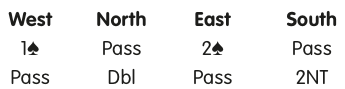 Not having a long suit to show, South bids 2NT as a scramble, asking North to suggest a suit.