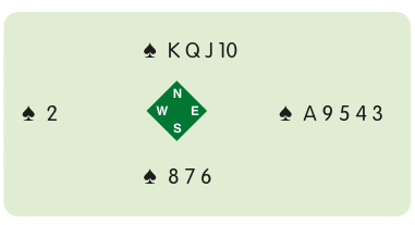 West leads the two of spades against a heart contract, clearly a singleton. After winning with the ace, East returns a high spade (the nine) to ask for the higher-ranking of the other side suits (diamonds) or the two to ask for the lower-ranking suit (clubs).