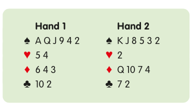 Playing weak twos, you open 2♠ on hands like these: